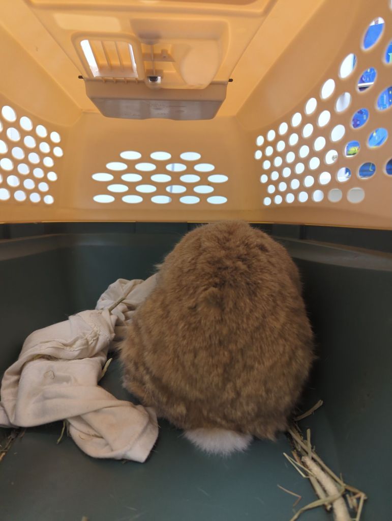 • Get your pet carrier ready: Make sure your pet carrier isn’t broken. Throw in a clean towel, so there’s traction at the bottom. If you have to evacuate your home for some reason, your rabbit will be ready to go with you. Make sure the carrier is plastic, so it will be harder for your rabbit to chew on if they have to stay inside it for a while.