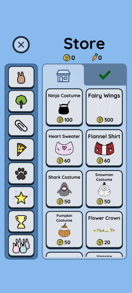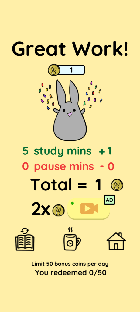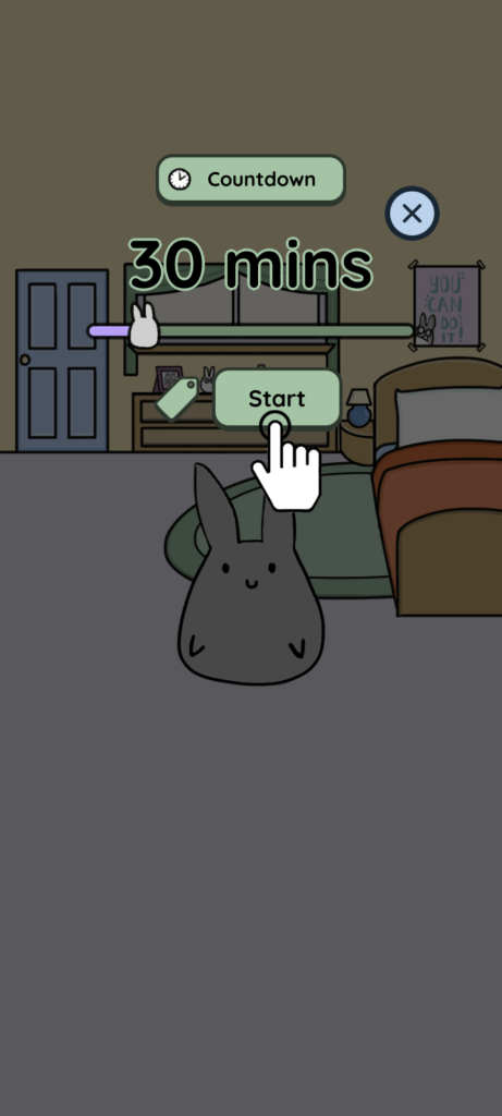 You can set up a timer to focus, and when the timer goes off, you earn coins. With the coins, you can go shopping for bunny clothes, accessories, and different app backgrounds.