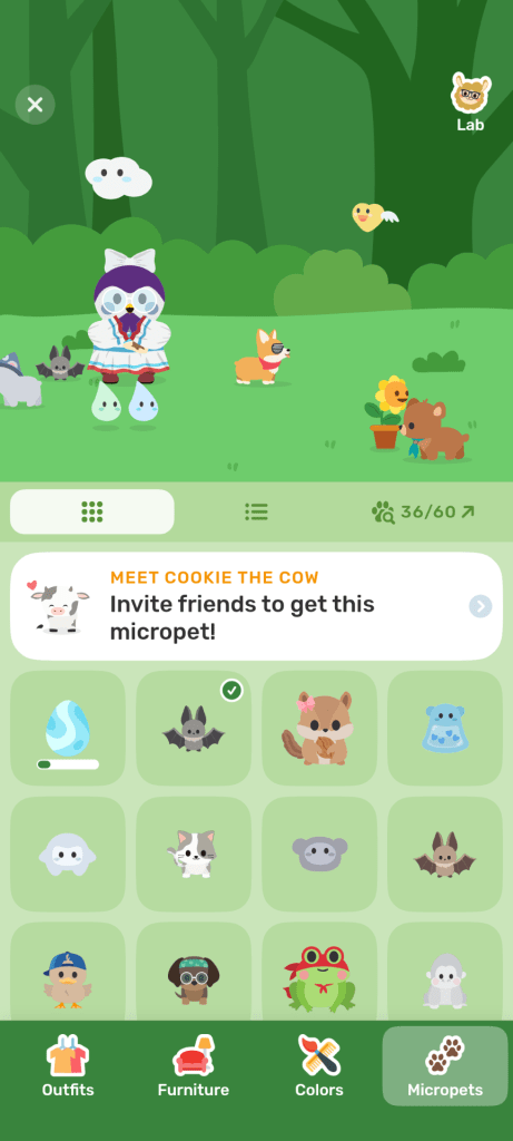 You earn these pets through monthly challenges or by focusing on doing a specific task consistently. There is a rabbit micropet that was released in 2025 as part of the “Veggie Vogue” event. Because you can only get the bunny through hatching random eggs now, it might take a while to get one. I’m still working on getting mine!