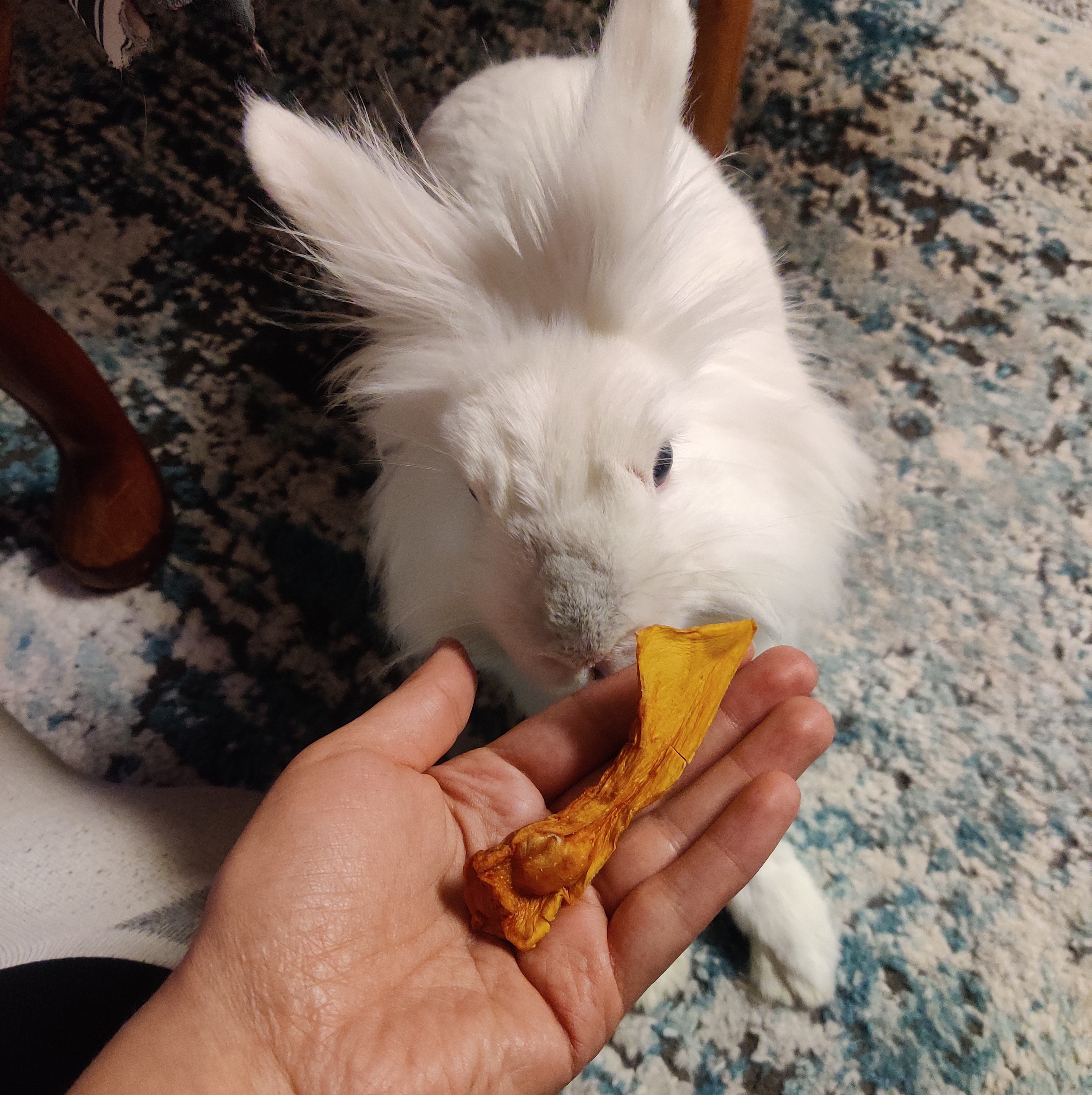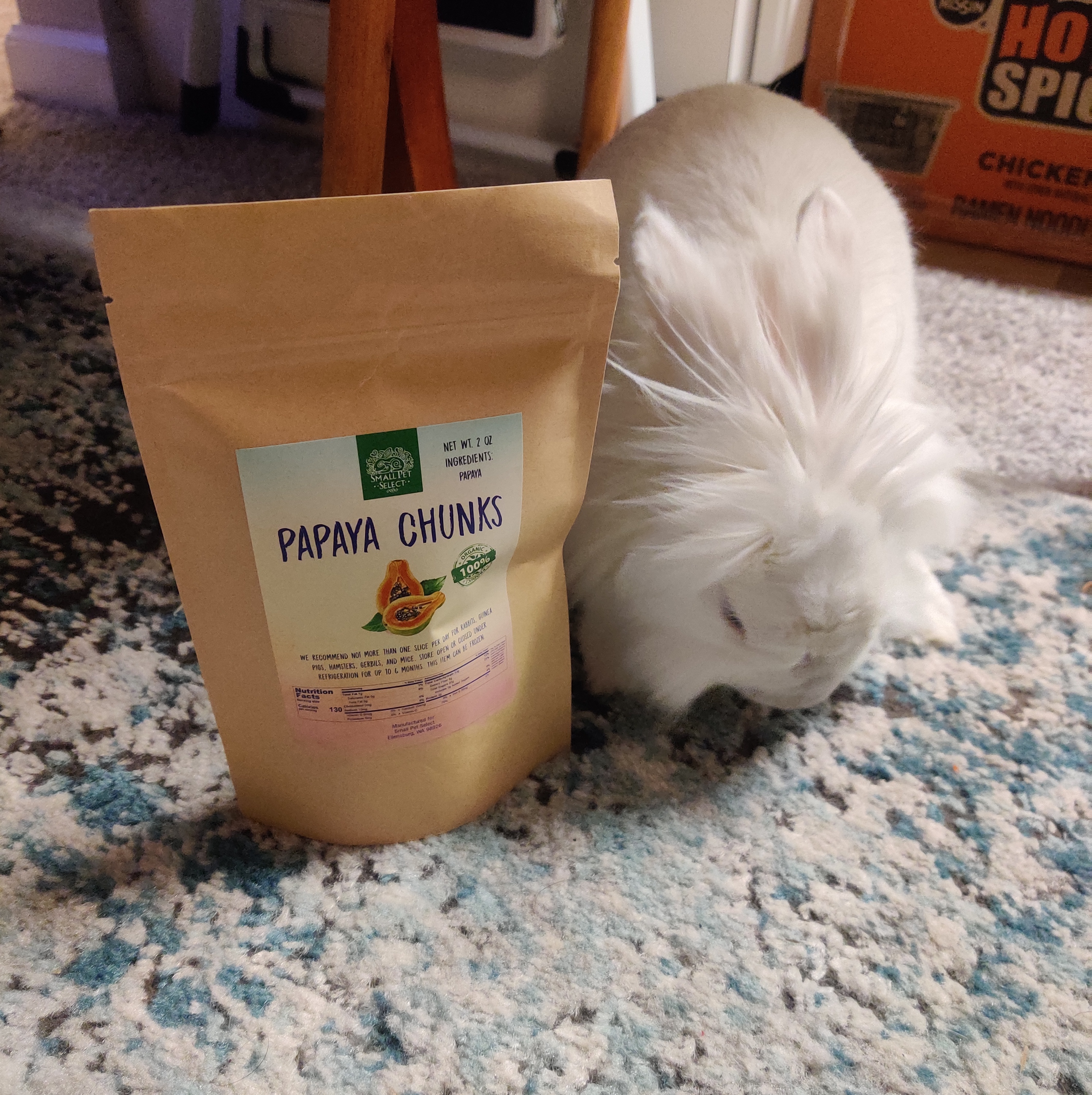 You know your bun (or can at least do a trial and error during advent). Pick your bun’s favorite treat, whether that’s a bag of dried papaya or a small piece of banana.